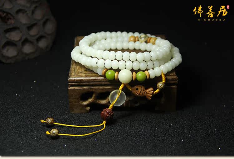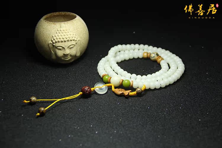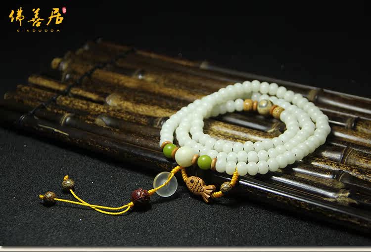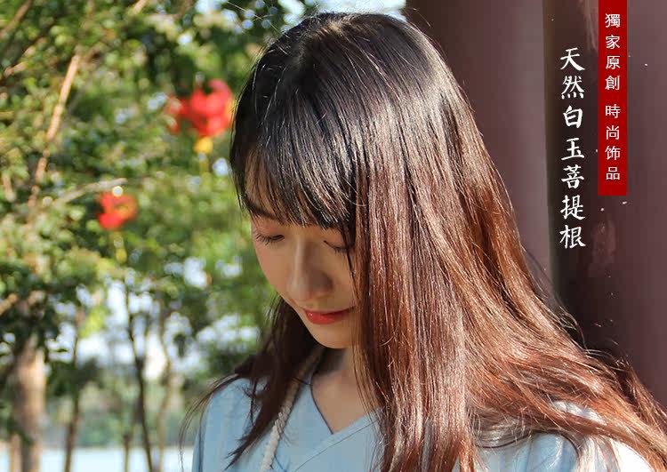 【韵丝】白玉菩提根108颗女士手链项链 禅意个性手工原创