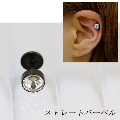 LeBRILLANT 【스트레이트 barbell 블랙 스톤소16G】바디 피어스(귀걸이)/바디 피어스(귀걸이)/캐치/스와로브스키/나사/레이디스/맨즈/게이지