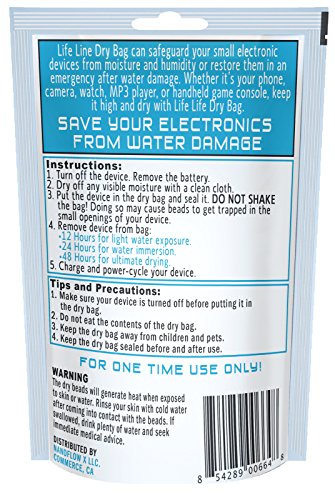 -. Feature : The lifeline dry bag is a liquid absorption bag designed to dry all the water out of your device / Works with phones, tablets, cameras, smart watches and other devices that can fit into the pouch / Lightweight & compact for travel, rescue your wet electronics before it is too late / For best results, allow for 12-24 hours to dry in bag, fits up to a 7 inch display phone/tablet / 700% more effective at removing moisture than rice