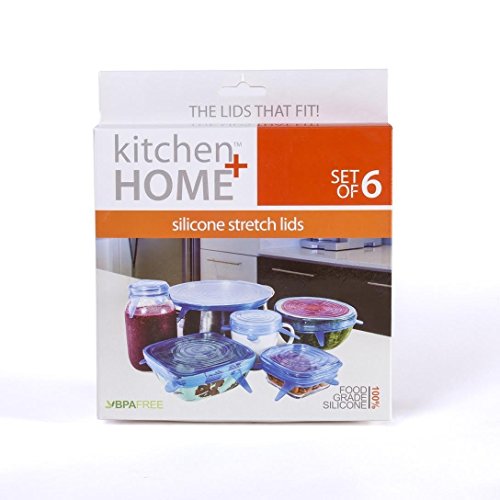 Kitchen + Home Silicone Stretch Lids - Set of 6 Silicone Food Saver Covers - BPA Free, Dishwasher, Microwave, Oven and Freezer Safe