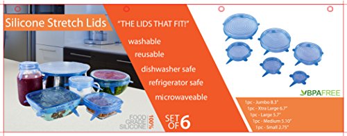 - FDA APPROVED – These stretch lids are FDA Approved 100% Food Grade Silicone, making them non-toxic and BPA-Free. Set of six convenient sizes: 2.75", 3.9", 5.1", 5.7", 6.7", and 8.3".