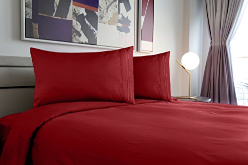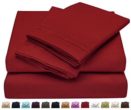 Queen Size Bed Sheet Set - Soft Brushed Microfiber Luxury Comfort Sheet Set - 1800 Thread Count Bedding Linens – Burgundy Red - Victoria Collection by Jessie Porter