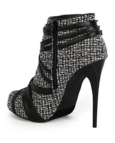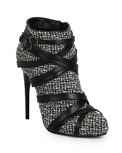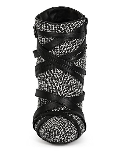 Liliana CI65 Women Tweed Criss Cross Wrap Strap Zip Stiletto Bootie - Black
