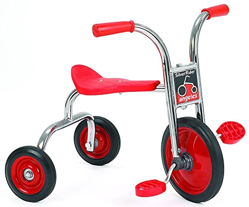 Studio : Angeles Publisher : Angeles Binding : Misc. Product Description Set of 2. Comfort back support. Recommended age: 24-36 months. Durable chrome plating. Welded steel frame with one piece welded crank. No exposed hardware on pedals. Recessed hub design. Solid rubber tires on spokeless steel wheels. GREENGUARD Gold certified. Accommodates up to 70 lbs.. Warranty: Five years. Made in China. 25.5 in. L x 20 in. W x 21 in. H (22 lbs.). Cleaning and Maintenance. 0