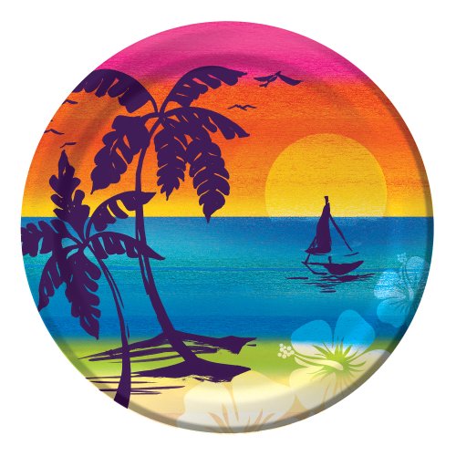 Creative Converting 8 Count Round Lunch Plates, Luau Aloha Summer Sunset