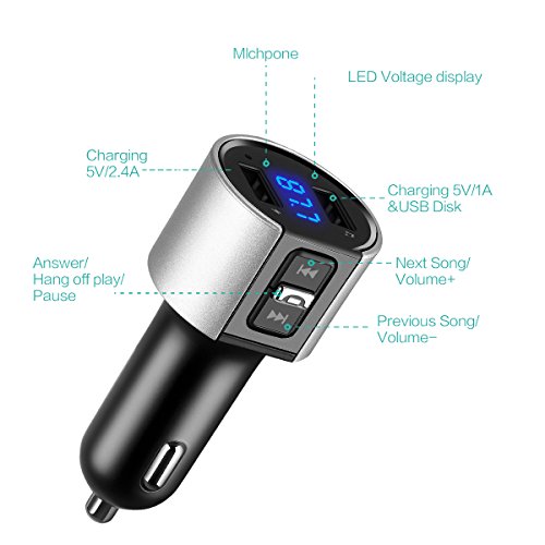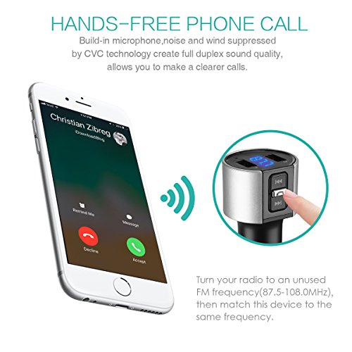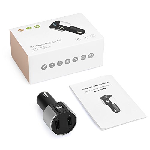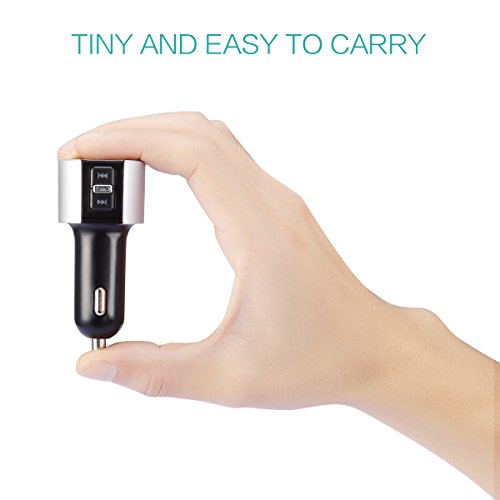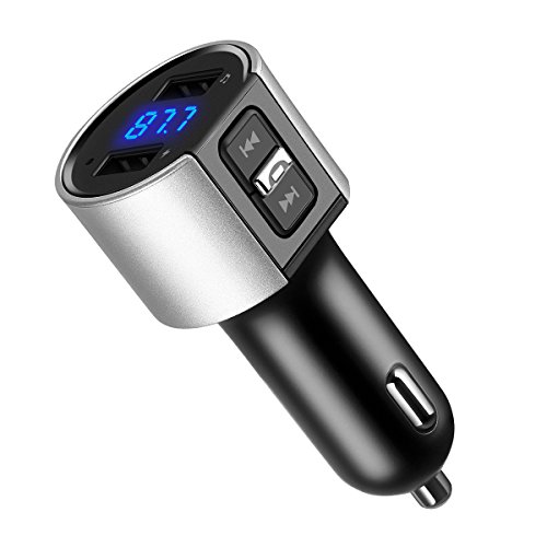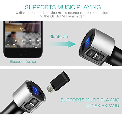 ORIA Bluetooth FM Transmitter, Wireless In-Car FM Transmitter, Hands-Free Calling Car Charger, with 5V/2.4A &1A Charging Ports, U Disk Music Playing Support, for iPhone, Samsung, Other Smartphones