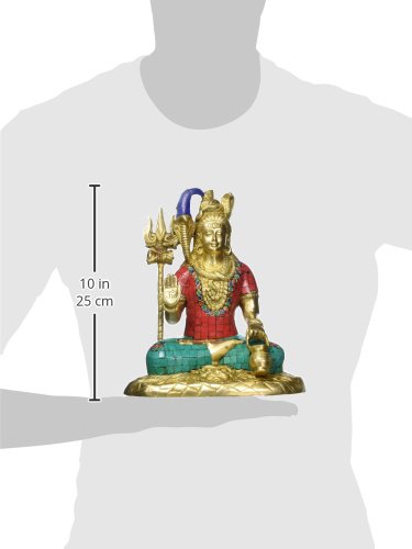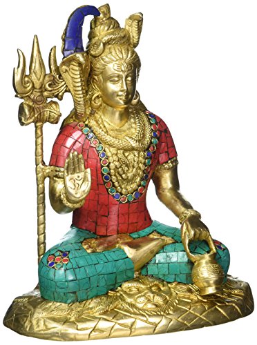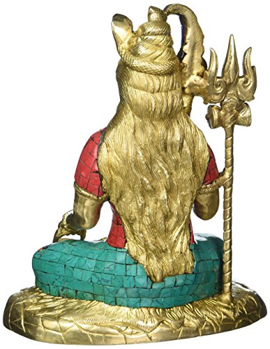 Large Shiva Statue- Mahakala Shiv in Lotus Meditating Pose- Hindu God of Trinity- Destroyer of Evil- Brass Idol with Turquoise Work