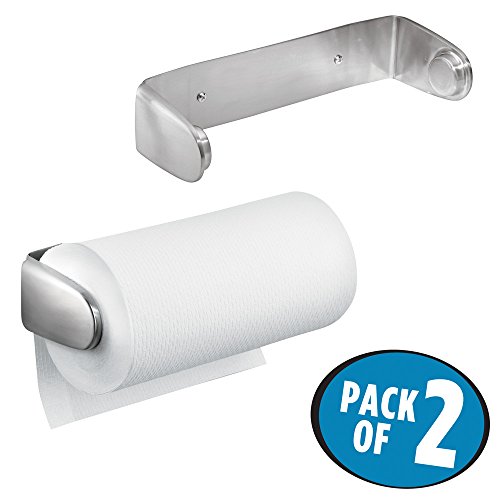 mDesign Wall Mount Paper Towel Holder for Inside Kitchen Cabinets and Home – Pack of 2, Brushed Stainless Steel