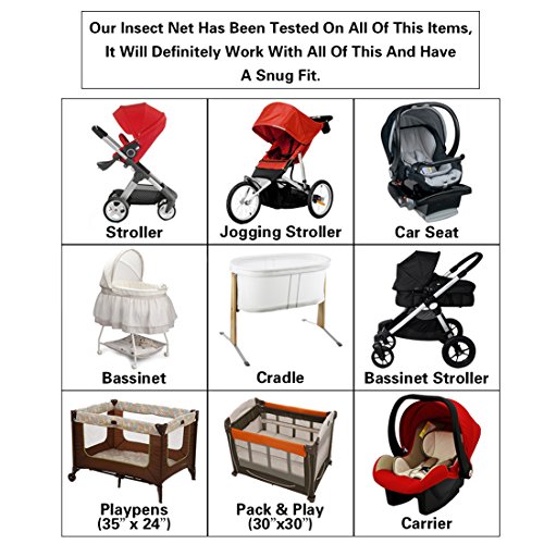 Fit snug and secure on strollers, carriers, car seats, cradles, cribs, bassinets, playpens