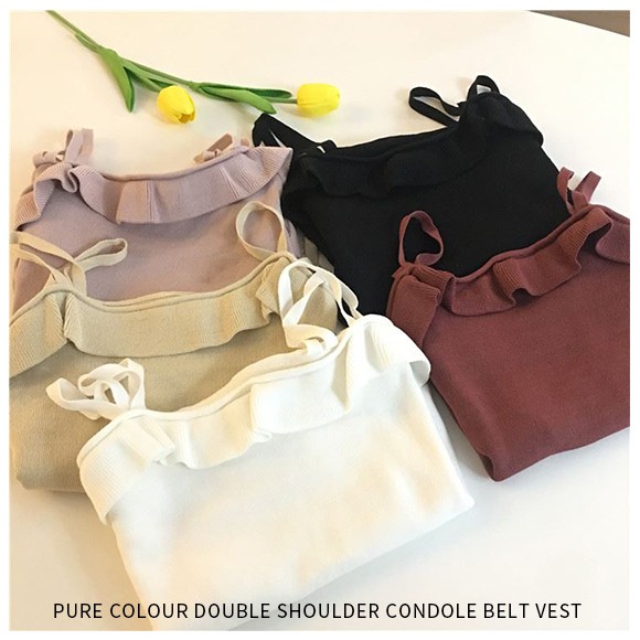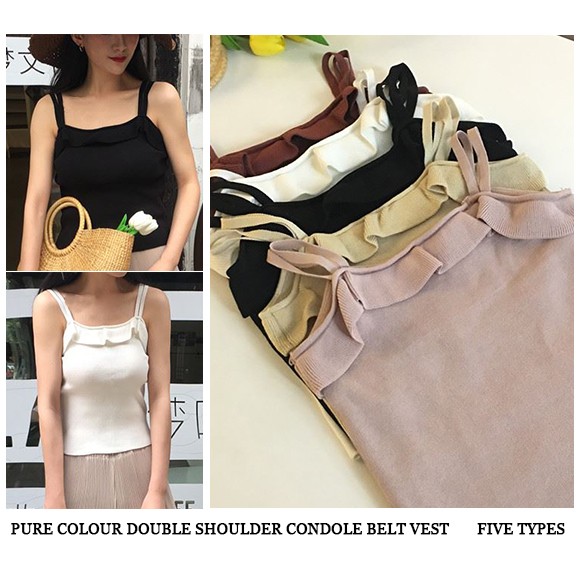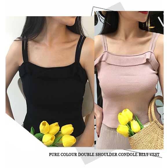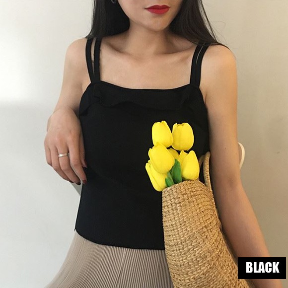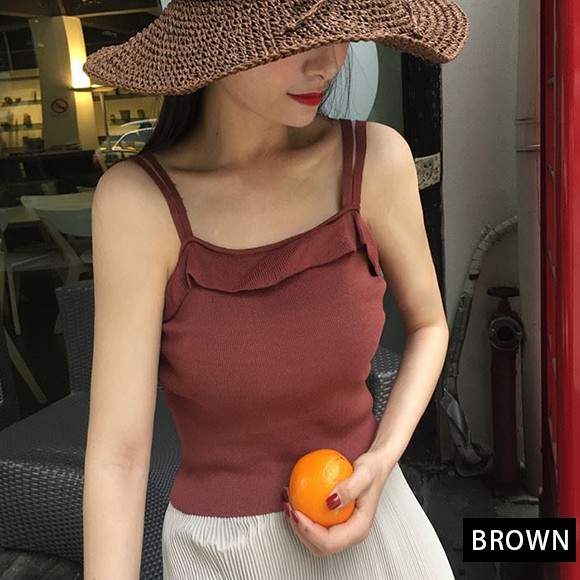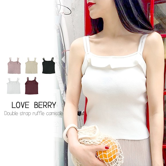胸元のフリルと、Wストラップがお洒落なキャミソール。