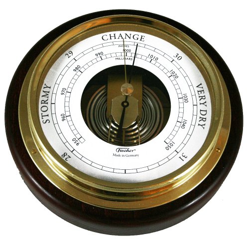 Ambient Weather 1434B-22 Fischer Mahogany Wood and Brass Marine Barometer, 6 1/2"