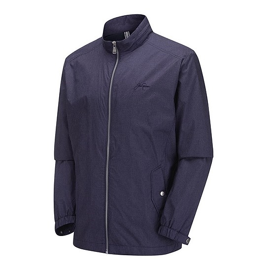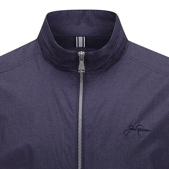 - 마이크로 체크 텍스쳐 디자인의 남성 경량 점퍼.