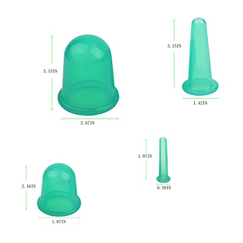 -. Feature : 4 different size cupping cups for different body parts: 80/68mm,80/36mm,55/50mm,50/15mm(height/diameter). / High quality silicone cupping therapy sets: The silicone is soft and elastic which is easy to squeeze. / Massage cupping kit for muscle & joint pain, inflammation, arthritis, fibromyalgia, neck and shoulder tension, stress relief. / This silicone cupping therapy sets help improving the blood circulation, lymph and lymph interstitial liquid. / 100% Money Back Guarantee if you not satisfied your order.Just please feel free to let us know if you have any problem and concern and we will solve it within 24 hours.