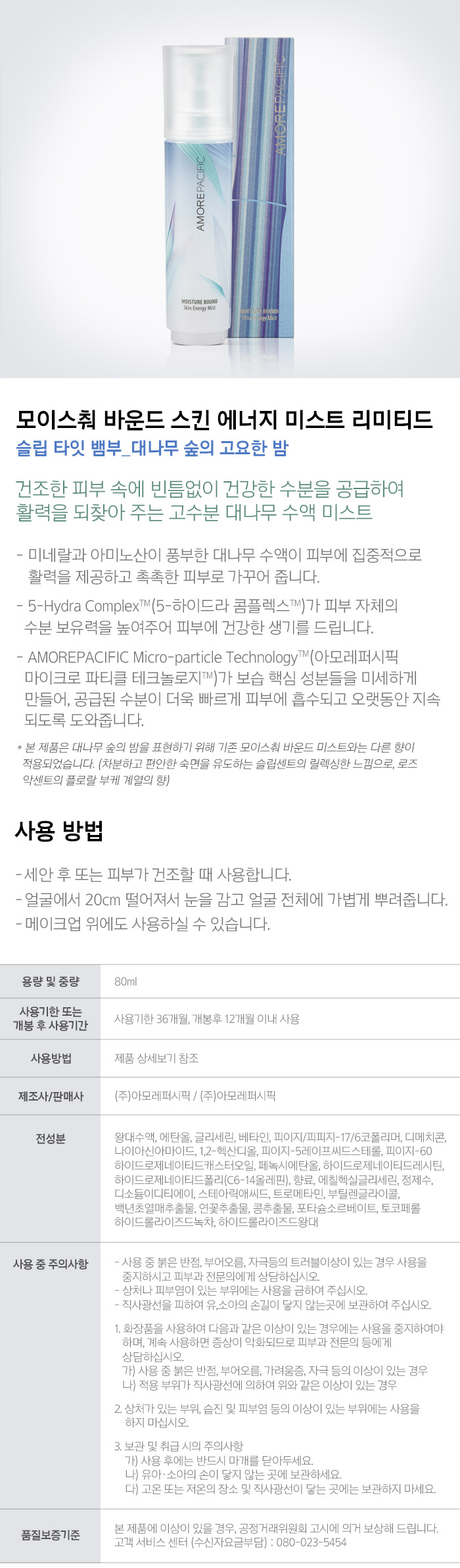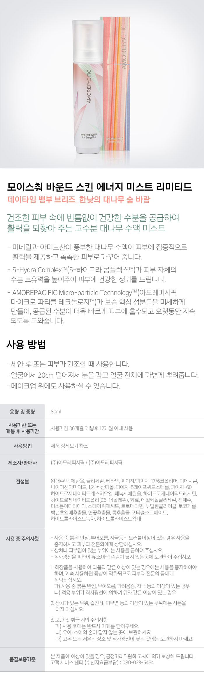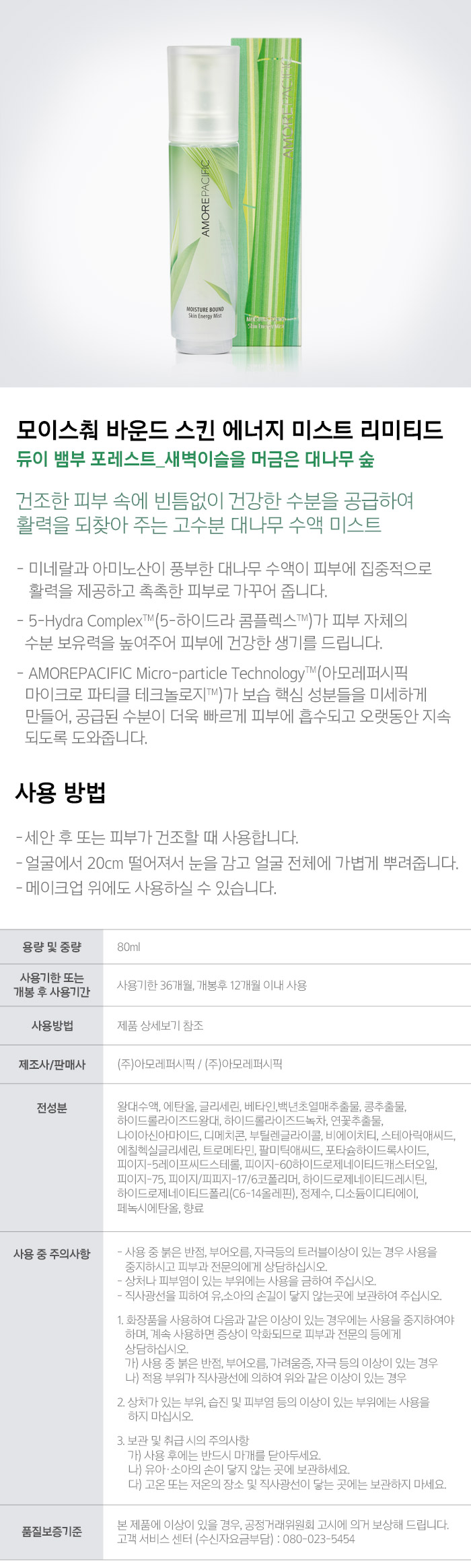 모이스춰 바운드 스킨에너지미스트 리미티드 (듀이 뱀부 포레스트) 80mlOR모이스춰 바운드 스킨에너지미스트 리미티드 (데이타임 뱀부 브리즈) 80ml