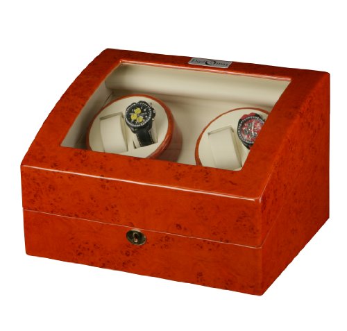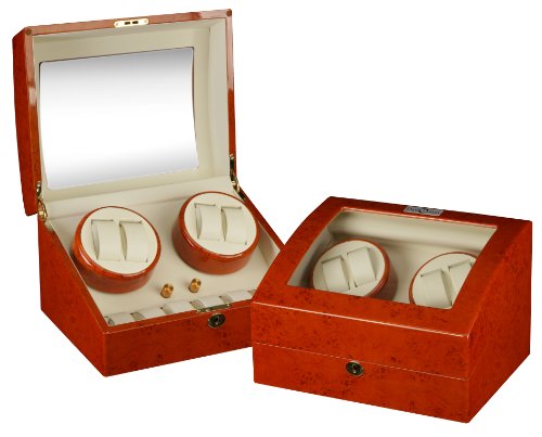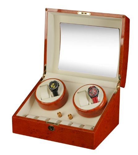 -. Title : Mahogany Wood Finish 4 Watch Winder With 6 Additional Watch Storage Spaces, Two Turntable With 4 Program Settings.