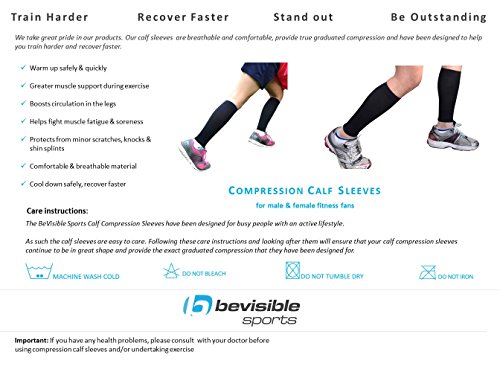 -. Title : Calf Compression Sleeve - BeVisible Sports Men and Women's Leg Compression Sleeves - True Graduated Compression - Calf Guard Shin Splints Sleeves - Best for Basketball, Running, Baseball, Walking, Cycling, Training and Travel - Boosts Circulation - Aids Faster Recovery - 1 Pair - Satisfaction Guaranteed