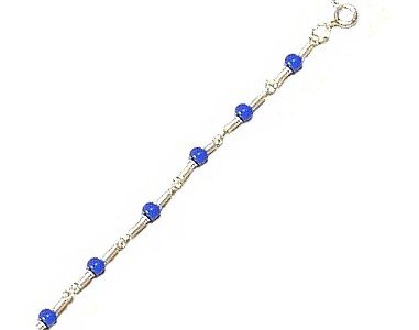 -. Title : Womens Blue Glass Barrel Beads & Sterling Silver Womens Anklet, Adjustable 10" - 11"
