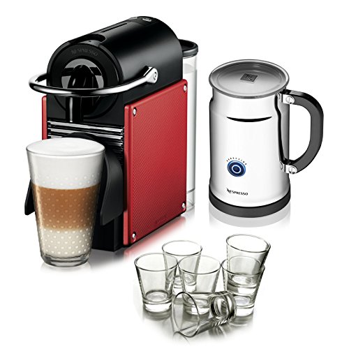 -. Brand : Nespresso -. EAN : 0029441098537 -. Feature : Dark red exterior / Container for 10 used capsules / Water tank reservoir can hold 0.7 Liters / Empty water tank detection / Optimized heat up time -. Label : Nespresso -. Manufacturer : Nespresso -. MPN : A+D60-US-DR-NE -. PackageQuantity : 1 -. PartNumber : A+D60-US-DR-NE -. ProductGroup : Kitchen -. ProductTypeName : KITCHEN -. Publisher : Nespresso -. Studio : Nespresso -. Title : Nespresso Pixie D60 Dark Red Espresso Machine with Aeroccino Plus Milk Frother and Free Set of 6 Italian Espresso Glasses -. UPC : 029441098537