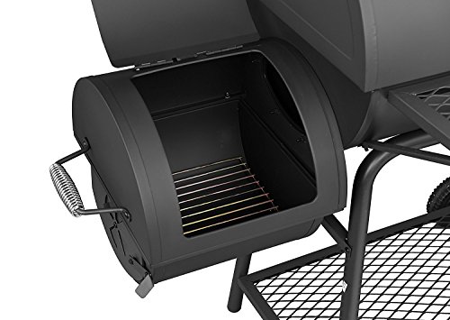 - Assembling easily, adopt new process,the paint on the burn box won't flake.total 782 sq inches cooking surface, 440 sq inches of main chamber, 1/4” diameter porcelain steel cooking grates; 180 sq inches for chrome warming rack; offset smoker provides extra 182 sq inches cooking area with porcelain steel cooking grates.