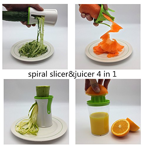 Hachef Spiral Slicer& Juicer –4 in 1 Multi-function Vegetable Spiral Slicer With Juicer Lemon Orange Squeezer, Vegie Pasta Zoodle Maker Zucchini Noodle Pasta Maker