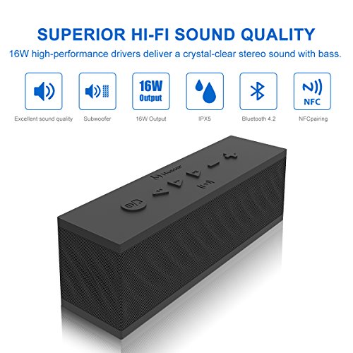 Hussar MBOX Bluetooth 4.2 Speakers, 16W Ultra Portable Wireless Speaker, Premium Sound w/ Enhanced Bass and Selectable Sound Effects,IPX5 Waterproof,Built-in Mic w/ Siri,12-Hour Playtime