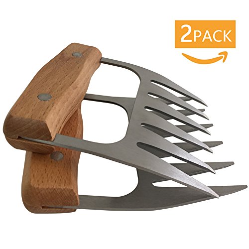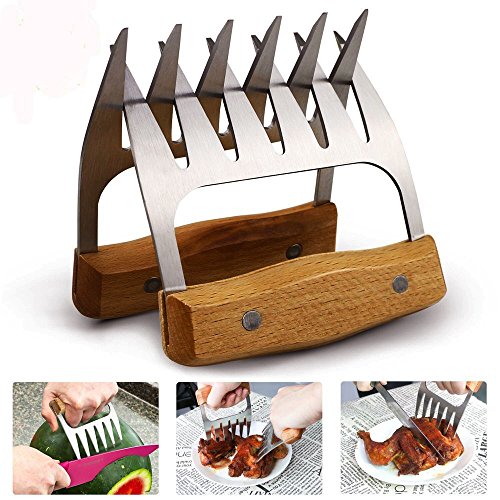 - ★PREMIUM QUALITY MEAT CLAWS--Our metal bear claws are made of high quality stainless steel and thick wood handle,Compare with some plastic or Nylon claws which may melted or bent and create food safety issues. They are easier to use more healthy and easy to clean up.