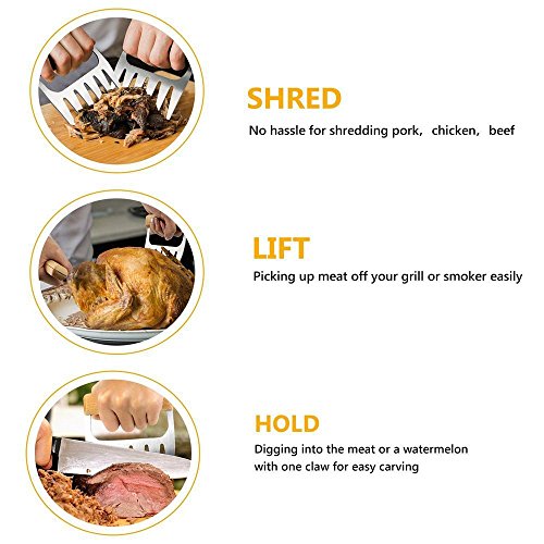 - ★ESSENTIAL KITCHEN & BBQ UTENSILS--Our durable bbq meat claws are excellent for use in the kitchen while cooking and handling turkeys and roasts, and are must have for safely pulling, shredding, holding and lifting meats that have been barbecued or smoked.
