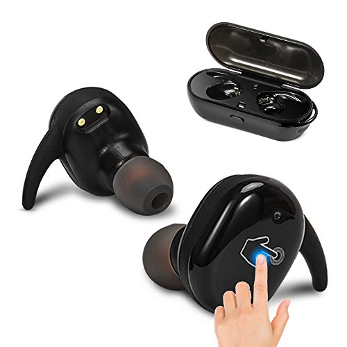 -. Feature : 【Touch Operation-Technology Innovation 1】 Our "touch-operation"eliminates the discomfort to your ear while applying pressure to the button.Touch operation becomes effortless and comfortable. All of the fuction by "touch" in our design which is extrmely convenience when you sport,enjoy music,and take part in other activitities. / 【True Wireless Stereo-Technology Innovation 2】 Truly cable-free between 2 earbuds, No more cable mess, these earbuds are completely wireless through a Bluetooth connection. BT 4.1 Low power consumption, better signal. / 【High-Fidelity Sound and Stable Connectivity】 With CVC 6.0 Noise & Echo Cancellation technology, it filters the outside noise to ensure the clear sound quality, makes you enjoy the stereo surround high quality music / 【MiNi, secure and humanized design】The earbuds are designed lightweight and small, appearing like a small dot in your ear. They are almost invisible. It is designed in ear, also comes with five size ear tips, suitable for most people / 【Charging and storage Carrying case 】 Not Only is a Carrying box, Also is a Intelligent Recharge Stand,it can charge the hmovie earbuds 3-4 times, that means you can extend 6-8 hours battery running time at whenever and wherever possible.