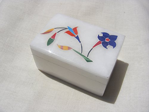 -. Feature : This Trinket Box has been hand crafted from Alabaster, renowned for its durability and beauty. For centuries, it has been used in India for traditional carving. Petra dura ~ Floral parchin kari work (in lay work) / Trinket Box measures approx Length 3" Inches x Breadth 2" Inches x Height 1.5" Inches. Top closure is fixed with brass hings to open. / Due to Multiple listing Size, Shape & Color may be Vary. / Shipping Time ~ Goods will be posted Every day, except holidays and Sunday. Shipping normally takes 7 to 10 days, but please allow 15 to 20 days, depending on cus etc.