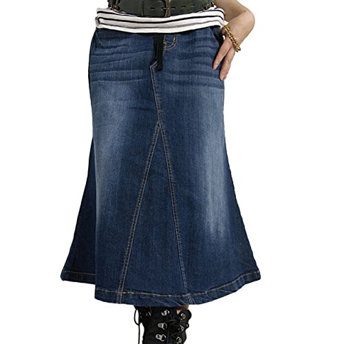 -. Feature : デニム ロングスカート Aライン ストレッチ ウエストリブ ウォッシュ加工。ウエストリブで楽チンストレッチデニム。広すぎず狭すぎないAラインの大人カジュアルデニムスカート。長すぎず動きやすい丈でロングシーズン着回せるデニム。サンダルや、ショートブーツ ロングブーツにも合わせやすい丈 / ■カラー:V.BLUE/BLUE/NAVY ■サイズ:S~M/L~LL/3L/4L ■素材 綿80 ポリエステル19% ポリウレタン1% 【画像モデル情報】モデル身長:154cm:着用サイズ:S~Mサイズ■透け感 なし■生地伸縮 あり■裏地 なし■生地厚さ 9オンス / 実寸 ・S~M 実寸:総丈76cm ウエスト約72~90までリブ&ゴム伸縮 ヒップ約94~110cmまで伸縮 裾巾:平置き約70cm ■・L~LL 総丈77cm ウエスト約78~106までリブ&ゴム伸縮 ヒップ約106~120cmまで伸縮 裾巾:平置き約76cm / ・3L 総丈78cm ウエスト約82~110までリブ&ゴム伸縮 ヒップ約110~128cmまで伸縮 裾巾:平置き約80cm ■・4L 総丈79cm ウエスト約90~120までリブ&ゴム伸縮 ヒップ約120~138cmまで伸縮 裾巾:平置き約83cm