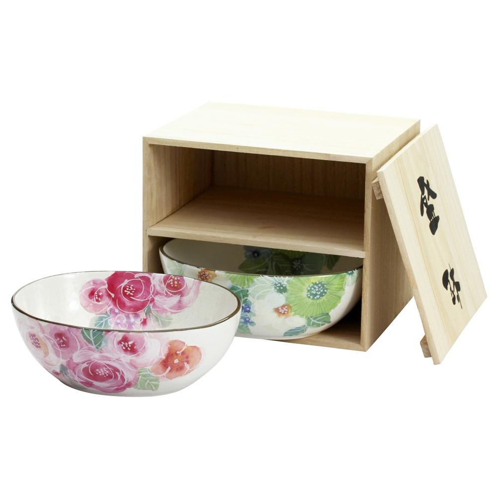 fk094igrjs色鮮やかな花柄が美しい2つの鉢を木箱に入れたセットです サイズ 鉢:16×14×H5.7cm 個装サイズ:14.6×17.7×15.5cm 重量 個装重量:1000g 素材・材質 鉢:磁器 木箱:天然木 仕様 食器洗浄機・電子レンジ使用可 木箱入り セット内容 鉢×2 生産国 日本(木箱:中国) 美しい花々が描かれた組盛鉢 色鮮やかな花柄が美しい2つの鉢を木箱に入れたセットです