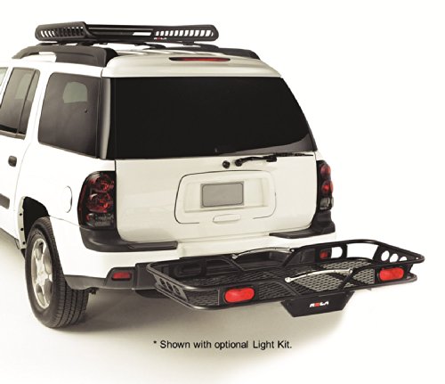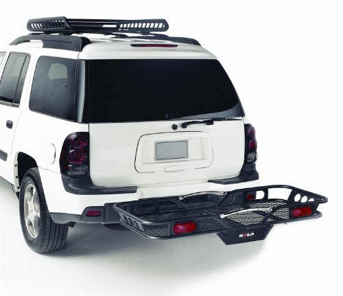 ROLA - Steel Cargo Carrier for 2" Sq. Receivers with 5-1/4" Rail, 23" x 56" Platform; designed with curved hitch mount to improve ground clearance. It is constructed from steel and is painted with black powder coating for better durability. This cargo carrier ensures easy installation and is backed by a five year warranty. Cargo Carrier is shipped 2 piece, with easy assembly. Shipping Carton Dimensions: 48” x 28” x 11”Feature
