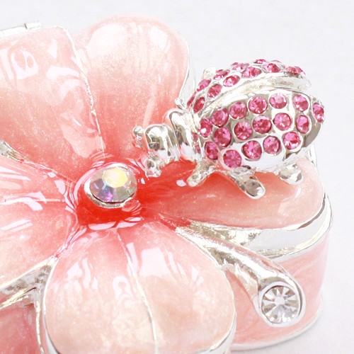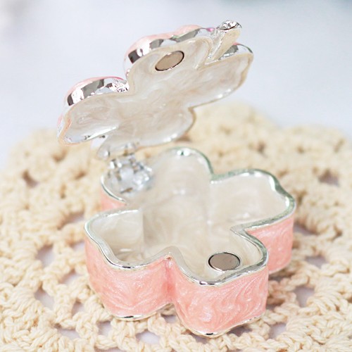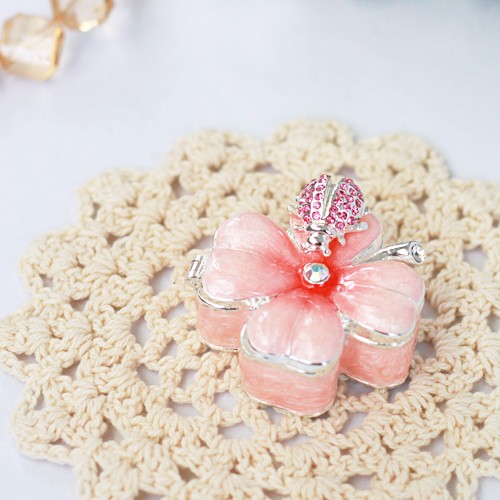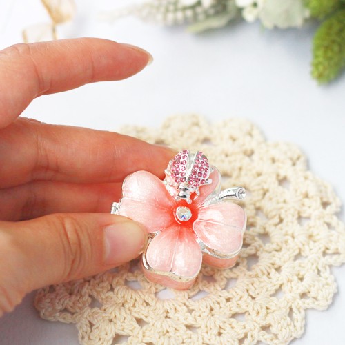 | ジュエリーボックスと言えば、指輪やピアス、ネックレスなどのアクセサリーを入れる引き出し型のケースを思い浮かべる方が多いかもしれません。 ピィアースのジュエリーボックスは、動物や花などをモチーフに作られ、合金製でずっしりとした重さがあります。また高品質のクリスタルガラスを贅沢に使用。まるでジュエリーボックスそのものが宝石のような、高級感溢れる仕上がりです。 小物入れとしても使えるように開閉口には磁石が取り付けてあり、アクセサリーなどなくしやすいアイテムの収納ができます。キラキラと美しく輝く宝石箱は、そのまま飾って楽しめるインテリア雑貨として多くの方に愛されています。 国内トップクラスのジュエリーボックスメーカーであるピィアースは、2004年ごろから本格的に宝石箱の製造を始め、現在のジュエリーボックスはなんと300種類以上。大規模展示会でもご好評いただいており、全国有名百貨店でも販売されています。 自社工場でひとつひとつ丁寧に手作りし、原型作成、研磨、加工、着色、小さなクリスタルガラスの取り付けなども全て手作業で行われるこだわりのハンドメイド品。完成後は厳しい検品の後、丁寧に梱包作業をしお客様にお届けしております。 ピィアース商品は、全国有名百貨店および全国有名宝石店チェーンにてお取り扱いいただいている高品質商品です。 ★自分へのご褒美に…コレクションして並べて飾ると、さらにかわいらしさUP! ★恋人へのプレゼント…中にアクセサリーを入れて、サプライズな贈り物として ★家族への感謝ギフト…お母さんや姉妹へ、日頃のありがとうの気持ちを込めて ★誕生日プレゼント…お友達の喜ぶ顔が見たいから、いつもと違うキラキラギフトを ★小さな女の子へ…まるでお姫様が使っているようなキラキラ宝石箱は女の子の憧れ! |