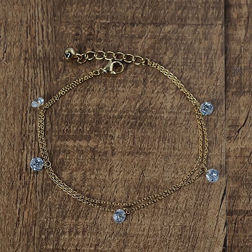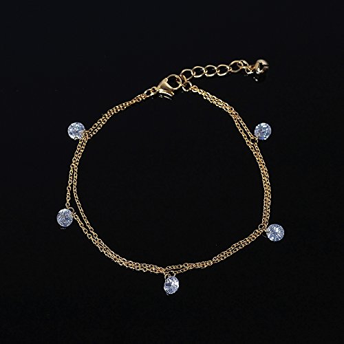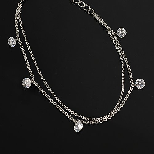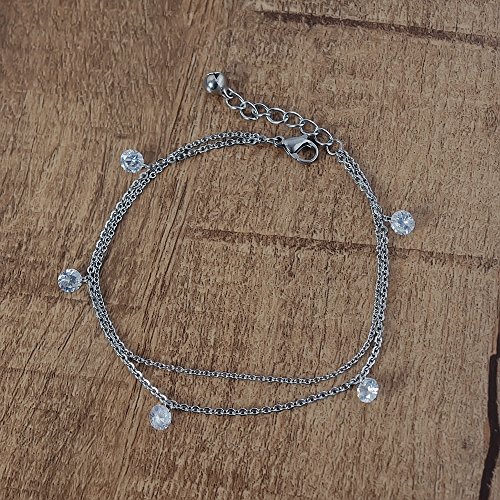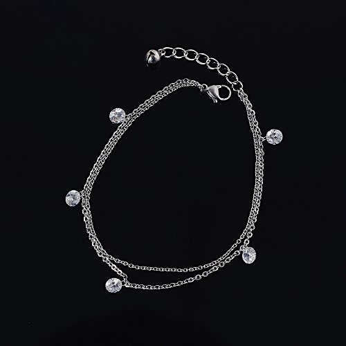 -. Title : Anklet Bracelet Boho for Women Teen Girls Silver Charm Chain Crystal Diamond Adjustable Beach Foot Jewelry-Bala