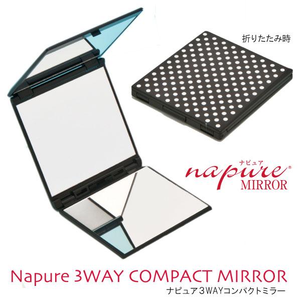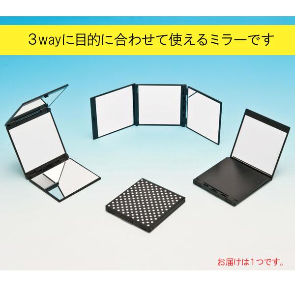 タテ・ヨコどちらもOK!タテ型はアイメイクミラーとして、ヨコ型は三面鏡としてお使いいただけます。角度調節可能です!本当の色・自然な色を映す鏡「ナピュアミラー」を使用しています。 製造国:日本 素材・材質:ABS樹脂、ナピュアガラスミラー 商品サイズ:88×95×10mm(閉じた時) 重量:100g カラー名:ブラック水玉 ※サプライヤー直送品 ご注文後3~4営業日後の出荷となります
