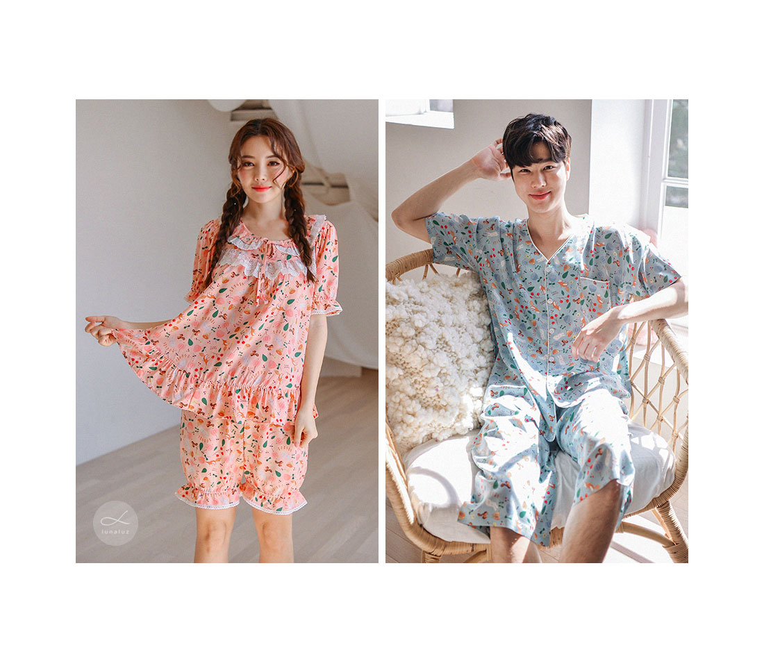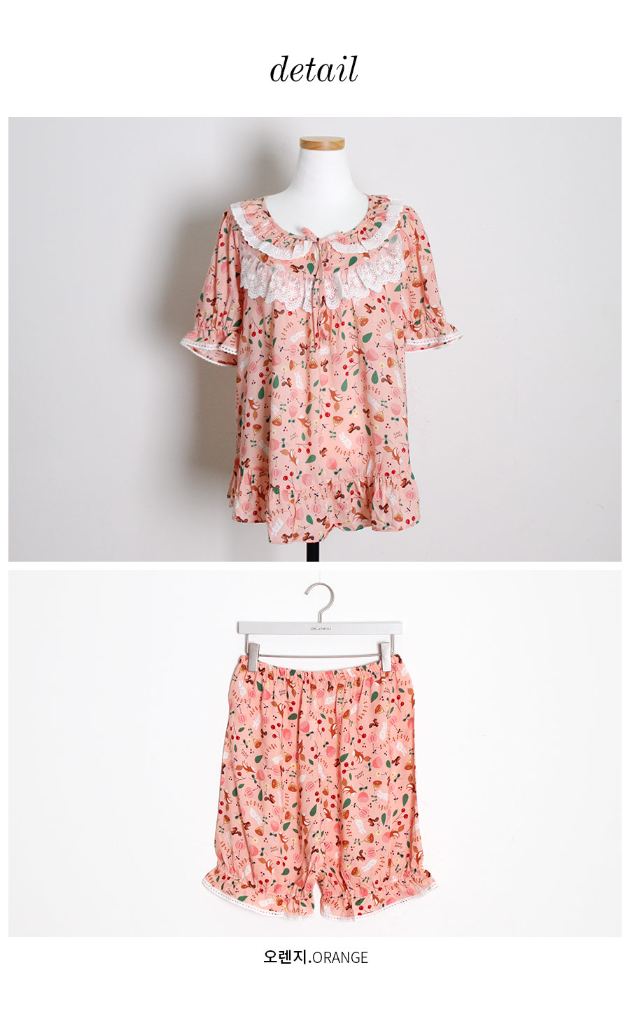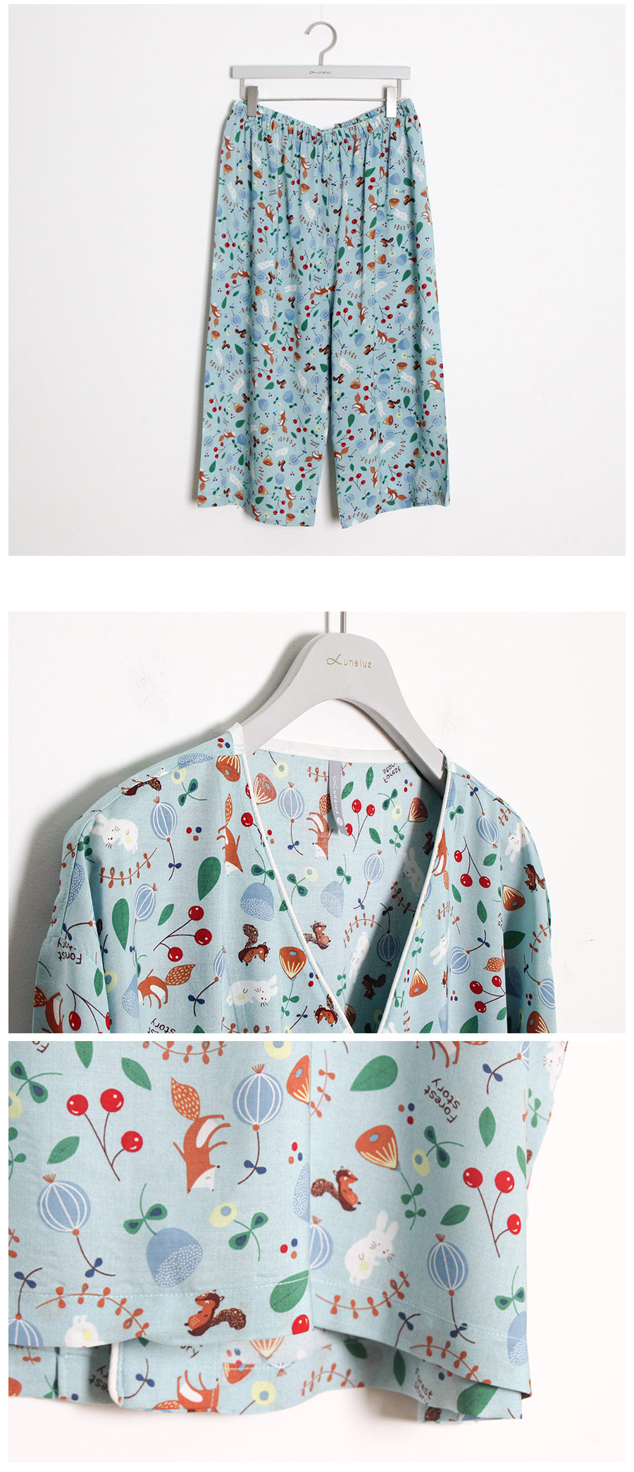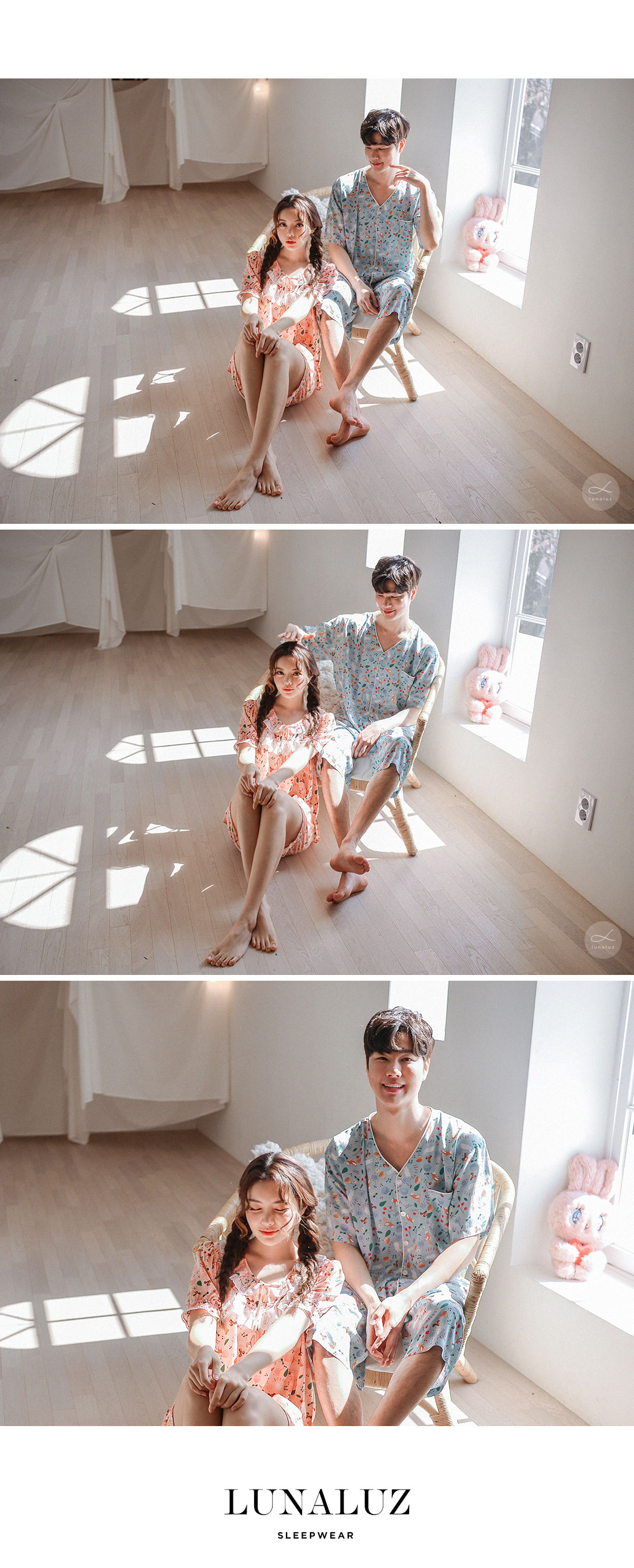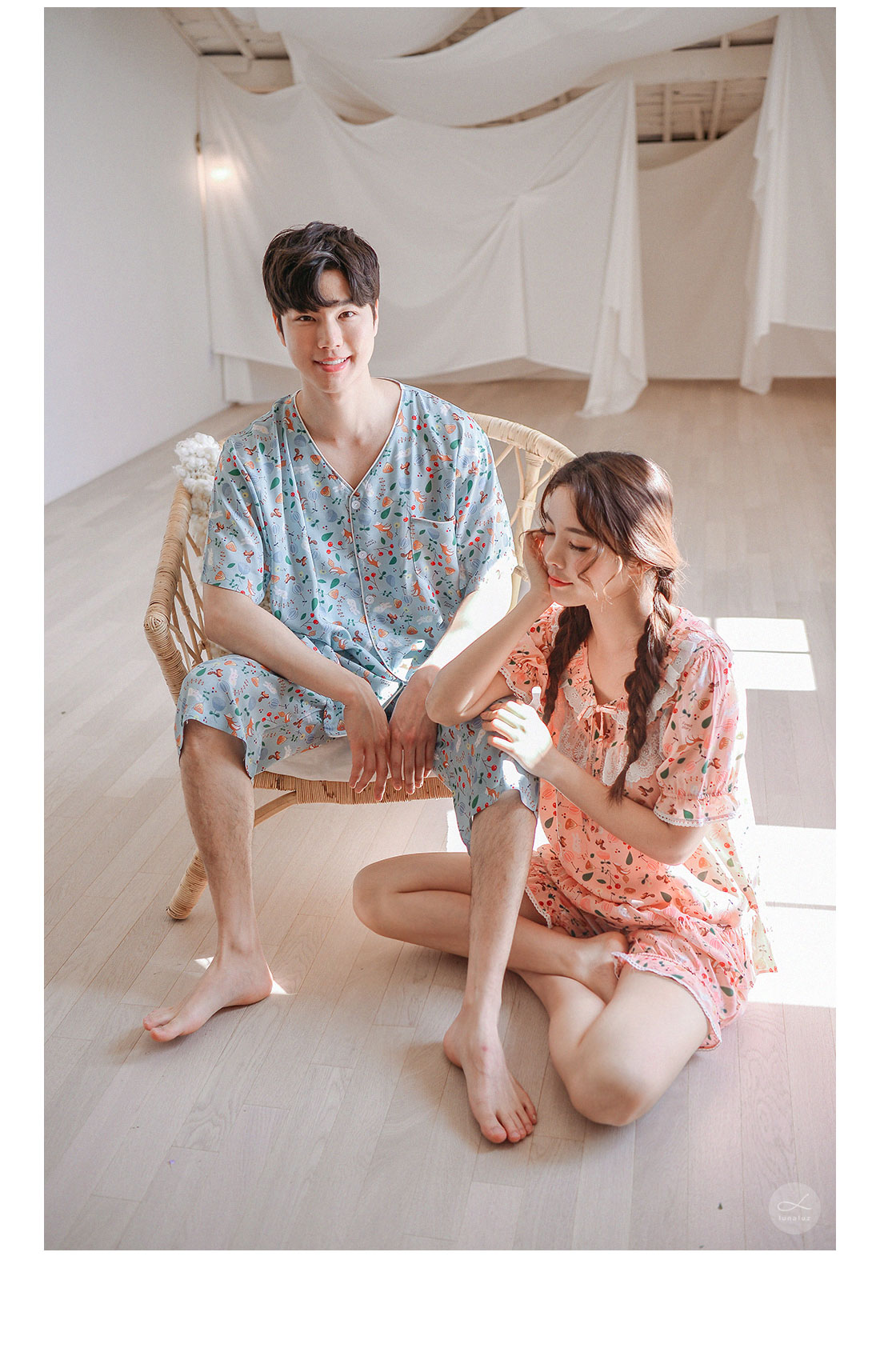 아기자기한 색감과 프린팅이 귀여운 커플느낌을 내어주는 레이온잠옷! 실키하고 드레이프성이 좋은 레이온 소재로 제작한 여름 잠옷이에요. 피부에 닿는 느낌이 시원해 더위를 많이 타는 고객님들에게 특히 추천해드리고 싶은 잠옷입니다. 시원한 색감 위에 동화에서 나올 거 같은 프린팅이 매력적인 원단이에요. 실루엣이 예뻐 보이는 소재의 특성상 체형의 결점을 슬림 하게 보완해줍니다. 얇고 흐늘거리는 소재인 만큼 까다롭고 고난위도의 봉제가 들어간 잠옷입니다. 부드럽고 체온유지와 통기성이 우수한 여름 잠옷으로 적극 추천해드립니다. 남성 잠옷은 시원한 색감의 스카이블루 , 여성 잠옷은 과즙미 나는 오렌지 컬러로 제작해보았습니다.