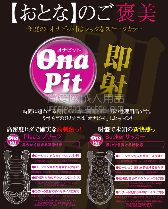 男の生理用品として人気のオナホール「オナピット」シリーズに、シックなスモークカラーで登场の「オナピットプリーツ」。前半に配置されたぷっくり优しいヒダが上下运动のたびに络まり、后半の大ぶりヒダがピンポイントに刺激、最后は最奥部のイボイボによる刺激で、浓厚な快感を与えてくれます。やすらぎのひとときに、「オナピット」で大人のご褒美を。