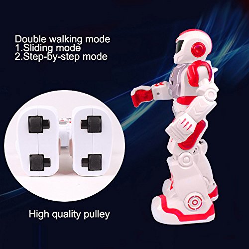 -. Feature : It can slide forward/backward, slide forward/backward, turn left/right / The robot can sing and dance to entertain you / The robot can be programmed to carry out movements as you create / Gesture control: using simple gestures, the robot can react to your gestures with basic movements, along with sound effects / This robot can also give popular science speech, very educational