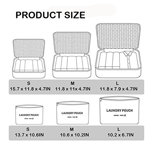【 Set with Perfect Sizes】Packing Cubes (15.7" x 11.8" x 4.7")(11.8" x 11" x 4.7")(11.8" x 7.9" x 4.7"). Laundry Pouches(13.7" x 10.6") (10.6" x 10.2")(10.2" x 6.7")