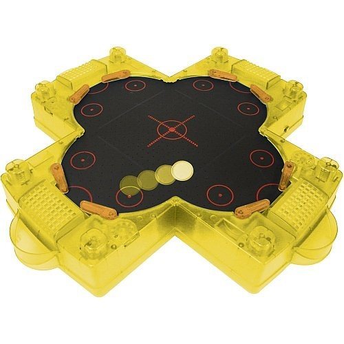 ReleaseDate : 2008-07-23 Studio : Ideal Publisher : Ideal Binding : Toy Product Description Bring the action of air hockey to your tabletop with this Poof Slinky OffTheWall air hockey game. It's designed with flipper controls, a score keeping dial on all 4 sides, and air that flows through the playing surface for high speed action.Off the Wall Tabletop 4 Player Air Hockey Game Features:Choose between 2, 3, or 4 player action Features arcade sound effects The puck glides on a cushion of air 4 "C" batteries required, not included Small parts. Not for children under 3 years. 0