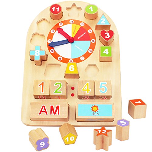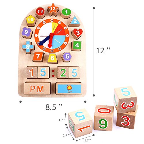 iPlay, iLearn Sorting Clock Wooden Shape Sorting Clock Educational Toy for Preschool & Toddlers