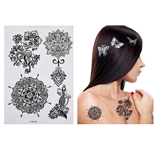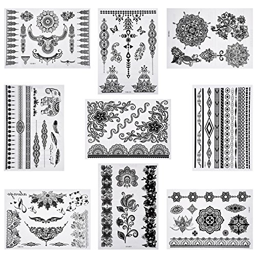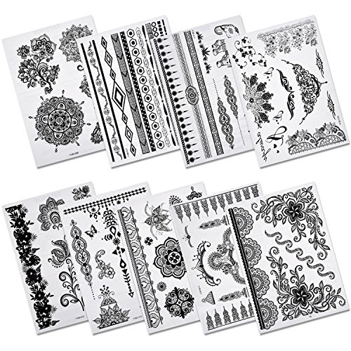 Aboat Pack of 9 Sheets Henna Temporary Tattoo Black Body Art Sticker