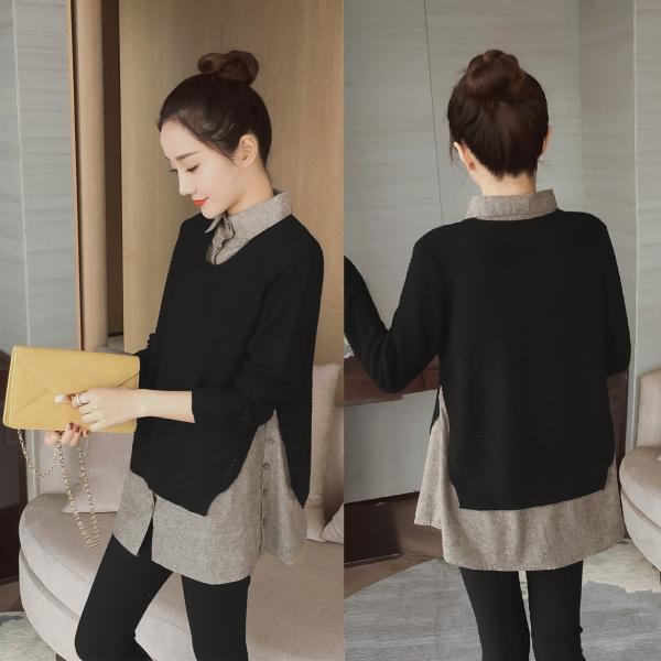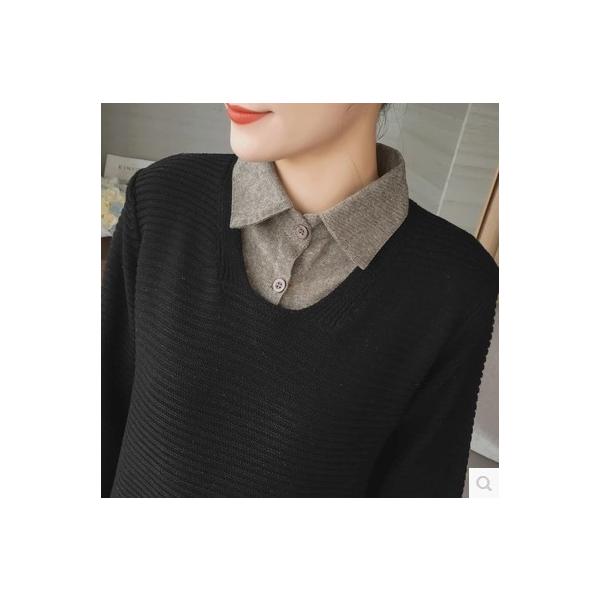 落ち着き目のカラーリングのシャツ・セーターのセットアップ。
