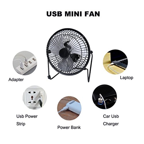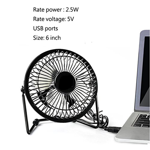Mini 6-Inch Quiet Small Personal USB Fan for Traveling,Fishing,Camping,Hiking,Backpacking,BBQ,Baby Stroller,Picnic,Biking,Boating (BLACK)