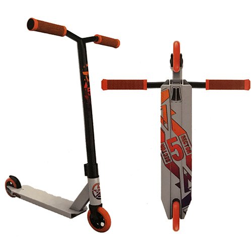 -. Feature : 4.25W x 19.38L integrated deck and headset made of 7075 aluminum with an 82.5 degree headtube / 20.00W X 21.50H oversized chromoly steel bars / TCS (tool less HIC) compression and a triple clamp to compress the bars onto the forks / 4130 high tensile chromoly steel forks / 110mm Superstar wheels with ABEC 9 bearings