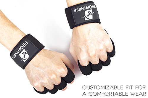 Get a firm group on improving your fitness with premium workout gloves from ProFitness A good workout requires dedication, effort and the right pair of gloves. That's because protecting your hands when you're lifting, doing pushups or pulling a drag rope is important for reducing calluses, sores and damaged skin. Get yourself a pair of ProFitness Workout Gloves and you'll not only keep your hands safer, you'll reduce stress and tension on your fingers, wrists and joints. Stronger Wrist Support These neoprene gloves boast silicone padded palms to improve your grip while the Velcro wrist straps helps keep them from sliding out of place and causing calluses or blisters. Gain the confidence you need to go for that extra set; get ProFitness Workout Gloves and keep your hands safe and strong. Product Details: - Breathable Nylon Glove Body