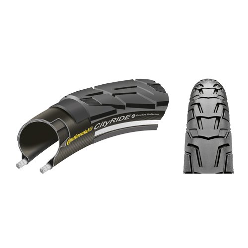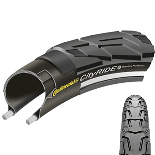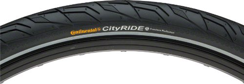 ReleaseDate : 2013-03-01 Studio : Continental Publisher : Continental Binding : Sports Product Description City streets can be hard on tires, but the smooth-rolling Continental City Ride II Tire is designed to take it. It features a new profile with a larger contact area for better grip on asphalt. Continental's exclusive PunctureProTection system shields it from penetration by glass and other sharp road debris, so you can keep on rolling no matter what. A reflective stripe on the sidewall enhances your safety by making you more visible after dark. Large contact area for great traction on pavement REFLEX reflective sidewall for better visibility PunctureProTection 3 plies/ total 66 tpi 0