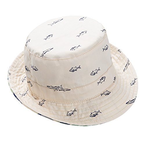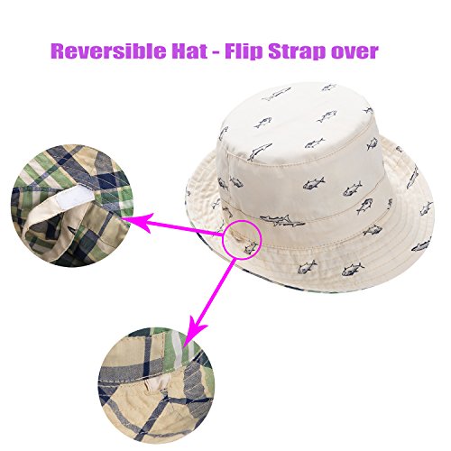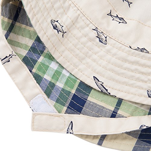 ☀Reversible Hat for 2 Color Options: Sun hat has a fish pattern on one side. Flip it over and the reverse side is a Blue or Green plaid print bucket hat.