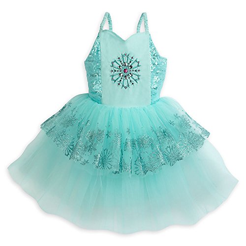 Your little ballerina will look the part in this Deluxe Leotard inspired by Frozen. With its rhinestone jewels and glittery snowflakes, this dress is sure to bring a whirlwind of happiness to her dancing play.Feature