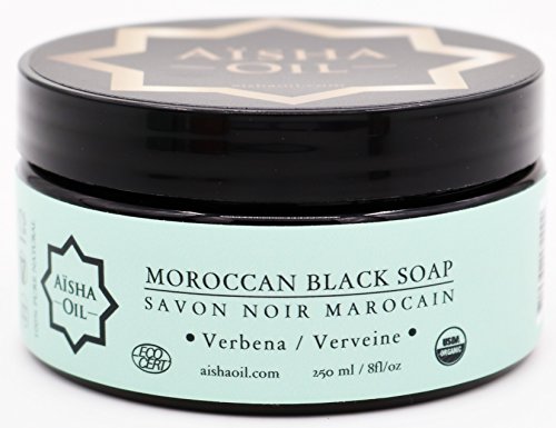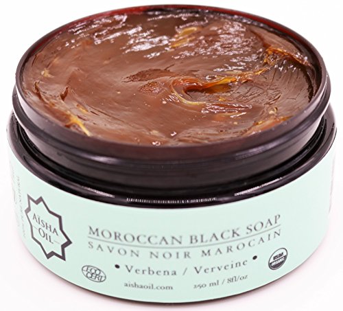 The Moroccan Black Soap (a.k.a. Savon Noir, or Savon Beldi), is one of our favourite parts of the Moroccan hammam ritual. It's a perfect mixture of olive oil and other essential oils (such as eucalyptus oil or wormwood), macerated black olives, which are soaked in salt and potash, and scented with argan, lavender, rose or orange blossom. It has been created with techniques that are more than 3000 years old, and used both to prepare the skin for exfoliation, and for exfoliation itself; it is an ultimate cleansing treatment for the skin. Aisha Oil Moroccan Black Soap products are 100% organically produced, starting by extracting and cold-pressing the kernels of the olives. This oil then goes through the same rigorous refining process as all of our other oils, where it is filtered to achieve optimum clarity. Once we've got the oil, the olives (which have been pitted and crushed) are added, and the mixture is soaked in a solution of salt and potash. Some companies use artificial potash, but ours is always 100% organic and unprocessed. Our traditionally-harvested potash has been made with the utmost attention to detail, making sure you only receive the most natural ingredients in your soap. How do I use it? Moroccan Black soap is extremely useful, beyond the common uses of regular soap. It doesn't feel like soap, though, and is much closer to the consistency of butter. Black Soap does not produce a large volume of lather, so it is important to always make sure your pores are open before applying the soap. This means ensuring that your skin is moistened with warm water, and that you use the soap in a steamy bathroom (or Hammam, or sauna). Pure Organic Moroccan Black Soap Lemon Verbena - Aisha Oil - Exfoliating Scrub SoapFeature